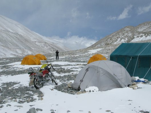 Ce repas fut dégusté avec délectation, d'autant plus que, luxe suprême, Pemba avait fait 120 km. dans la journée pour nous rapporter un chauffage au gaz. Ce qui nous permit de ne pas manger en doudoune, du moins pour les plus proches du poêle.